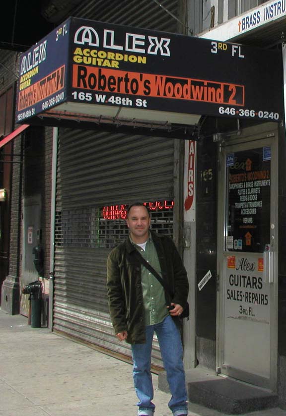 Here is a picture of me in front of the new location of Alex Music in May 2003. Alex Music used to be on the same side as Manny's Music. Now one of the many Sam Ash stores on 48th street has taken up space. 48th Street, while fun to visit, isn't what it used to be.